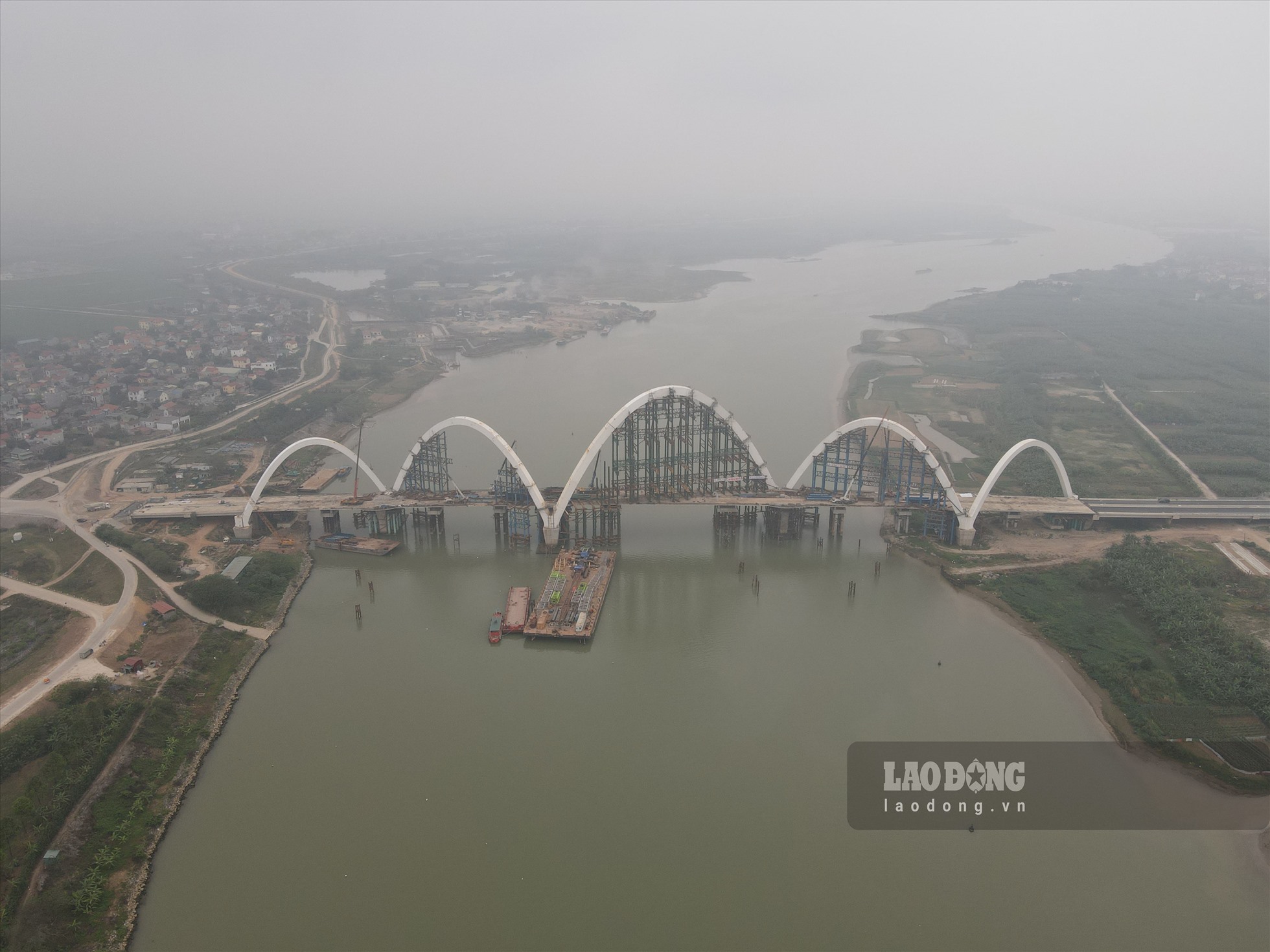 Bắc Ninh - Với góc nhìn từ trên cao, cầu Kinh Dương Vương - cầu vòm thép cao nhất Việt Nam hiện ra như thân rồng cuộn hình chữ S, bắc qua sông Đuống.