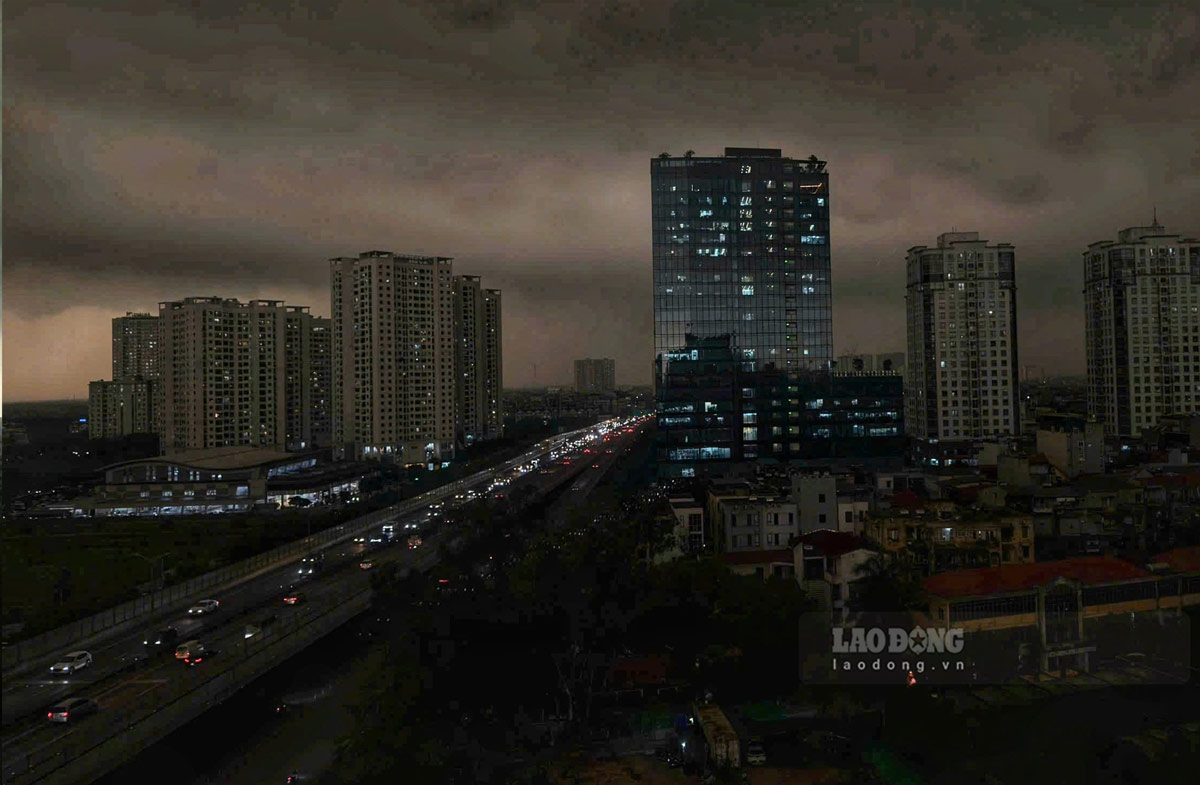 Hanoi - On the morning of April 17, the city is forecast to have thunderstorms, the sky darkened, and many vehicles had to turn on the lights when traveling.