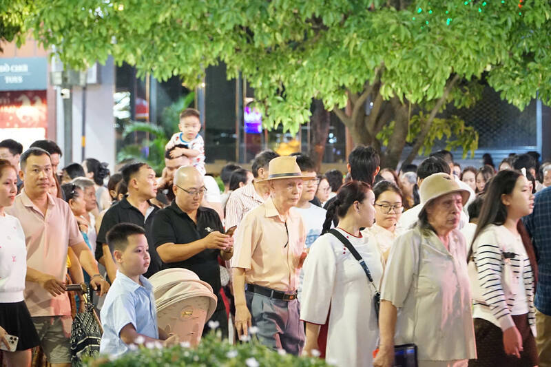 HCMC - On the evening of the 29th of Tet, many people and tourists moved to the center of HCMC to have fun and take photos.