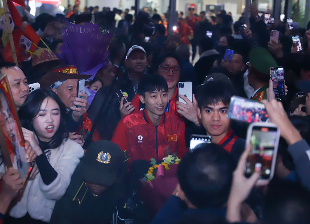 U23 Vietnam returned home after the 2026 AFC U23 Championship, in which central defender Hieu Minh had to move in a wheelchair, and the whole team was widely welcomed by fans.