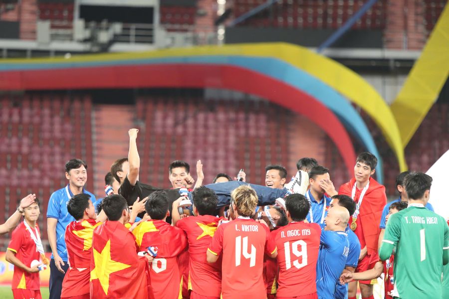 U22 Vietnam and fans present at Rajamangala Stadium celebrated emotionally after winning the 33rd SEA Games.
