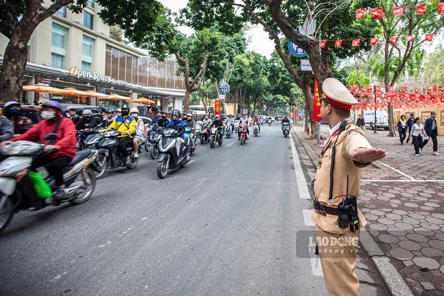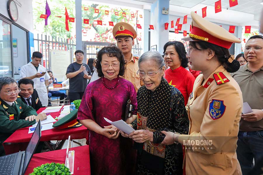Hanoi - 101-year-old voter in Ba Dinh ward was supported by traffic police to be taken to the polling station, directly voting during the "All People Go to Vote" Day.
