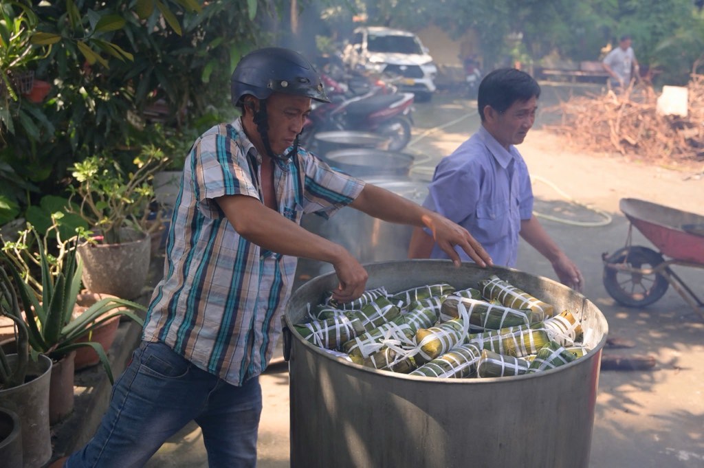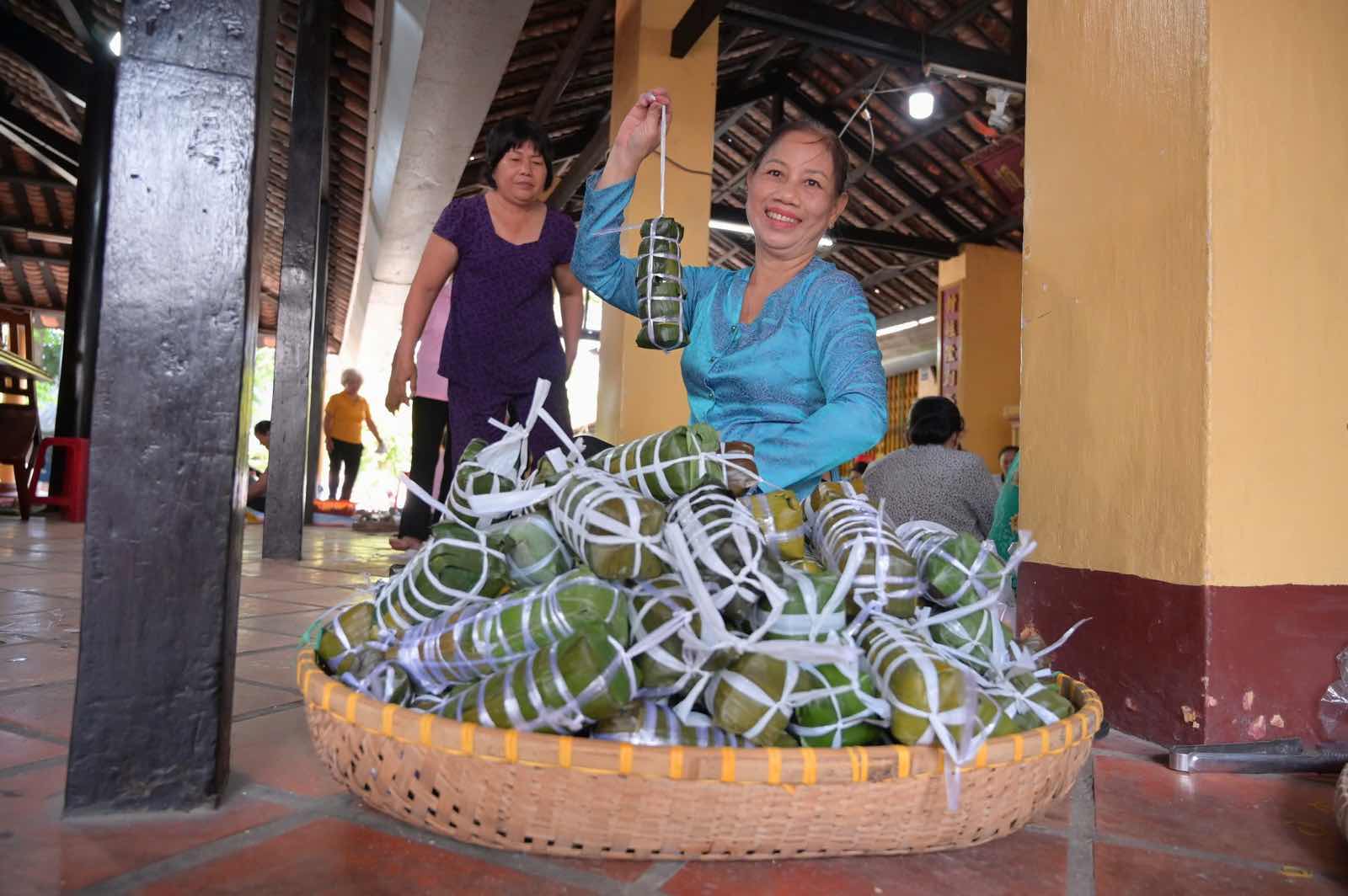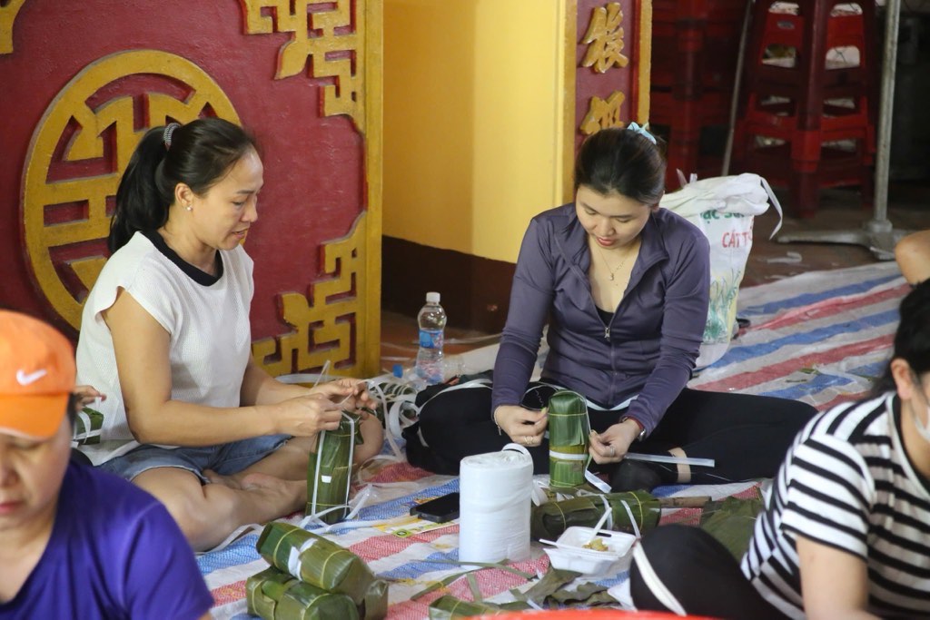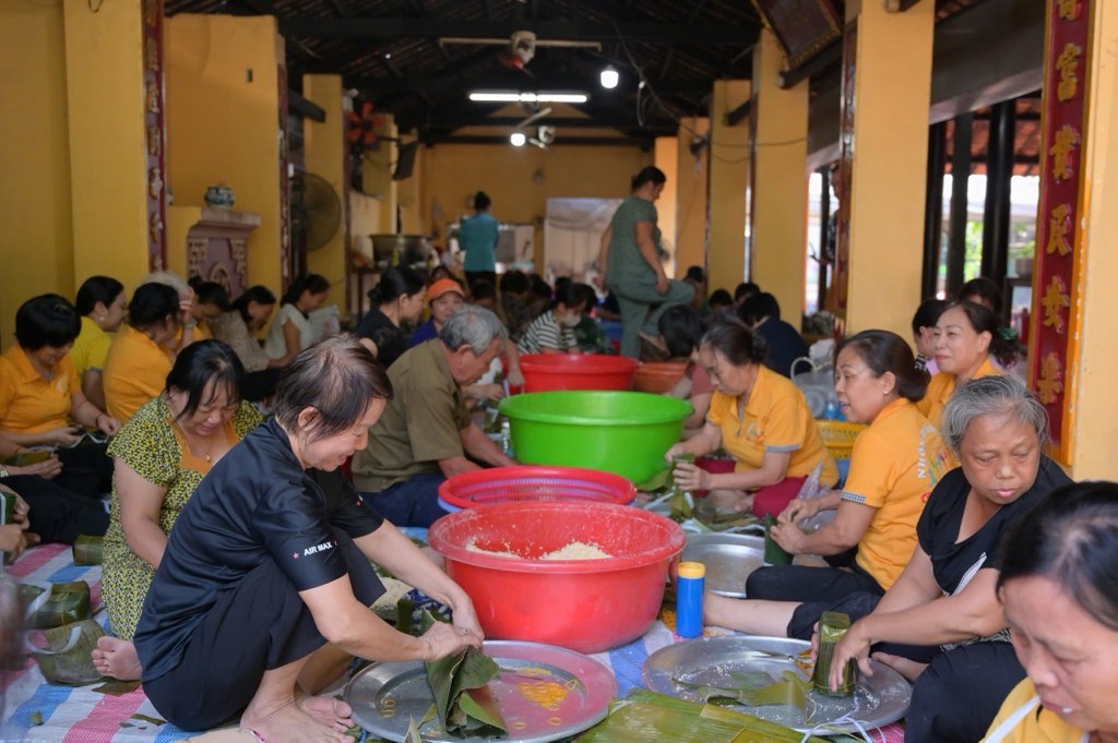 HCMC - A large number of people gathered at Truong Tho communal house (Thu Duc ward) to wrap banh tet to send to the Central region, sharing the common difficulties with people after the flood.