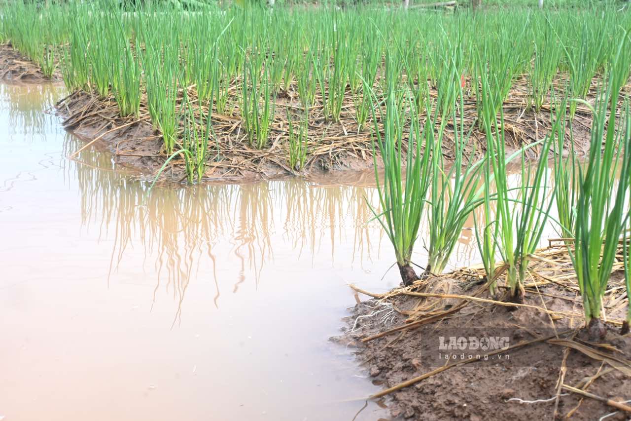 Hanoi - At noon on October 1, many vegetable gardens in Thuong Cat ward (Hanoi) were flooded after heavy rain. Farmers are forced to harvest early, even when the vegetables are still young, to avoid damage.