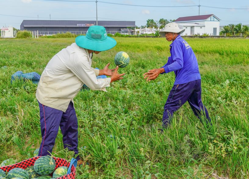 Soc Trang - Rice cultivation is at risk of losses while leaving vacant land is unproductive. Many households have switched to growing watermelon, helping to generate income during the dry season.