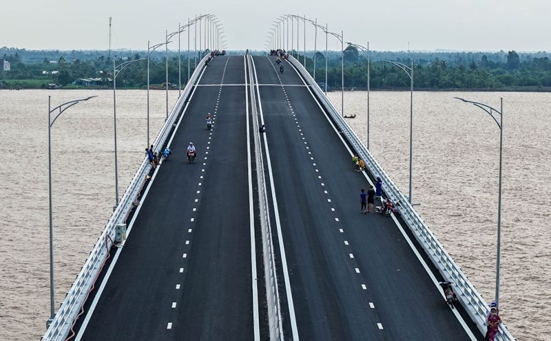 Can Tho - Dai Ngai 2 bridge is basically completed, allowing temporary traffic to help people in the two communes of An Thanh and Cu Lao Dung to stop waiting for the ferry.