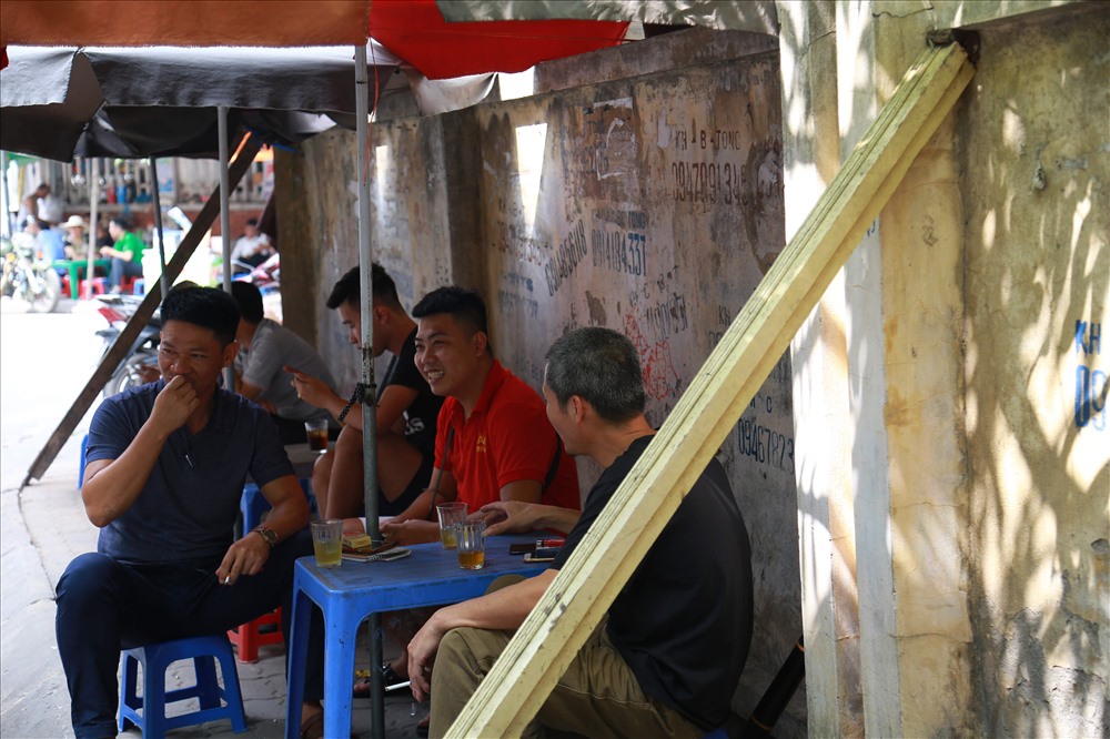 Dưới đoạn tường "tử thần" của khu Văn hóa nghệ thuật (phường Mai Dịch, quận Cầu Giấy, Hà Nội), nhiều người bất chấp dựng hàng quán bán trà đá mưu sinh.