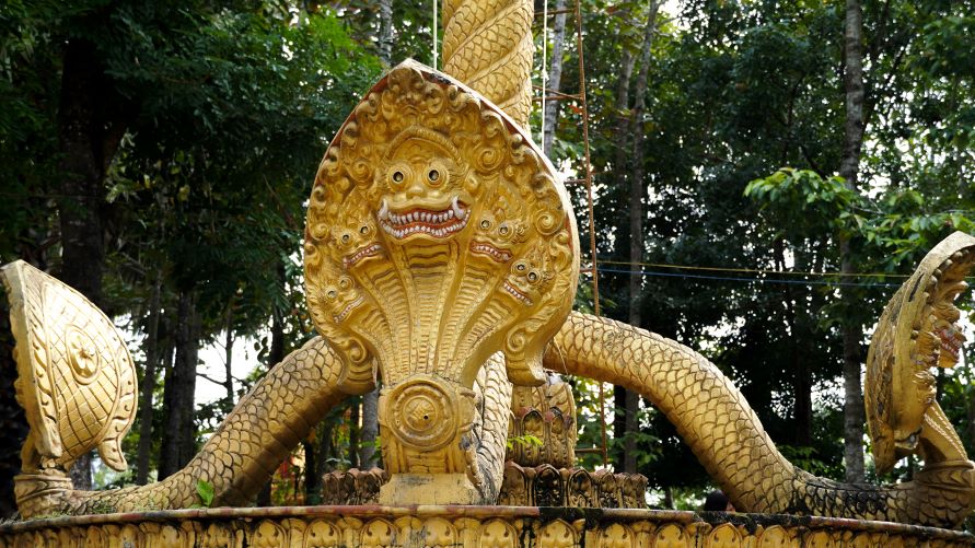 Close-up of Naga snake statues in Khmer pagodas