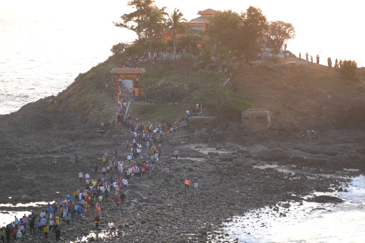 Ba Ria - Vung Tau - The sacred temple on Hon Ba Island in Vung Tau attracted about 10,000 people to offer incense and pray for peace on the first day of the new year.