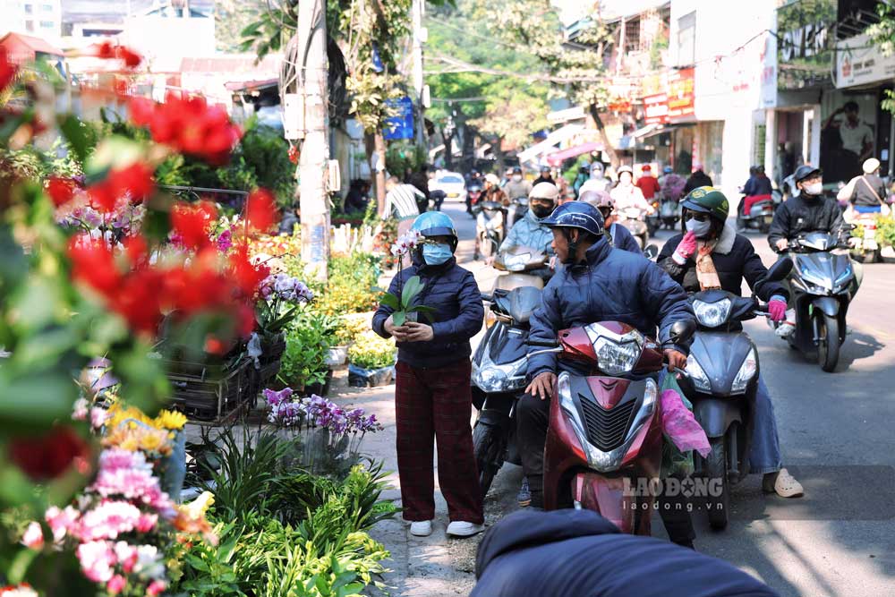 In the last days of the year, Hoang Hoa Tham Street (Ba Dinh, Hanoi) is bustling with people buying plants and flowers to celebrate Tet early.