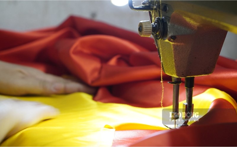Bustling sewing machines in the house of a woman who has been sewing the national flag for more than 30 years
