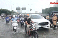 Streets are deeply flooded, traffic is congested, Hanoi residents have difficulty moving