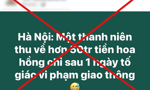 Facebook has been spreading an article saying that a young man in Hanoi received more than 50 million VND after just one day of reporting a traffic violation.