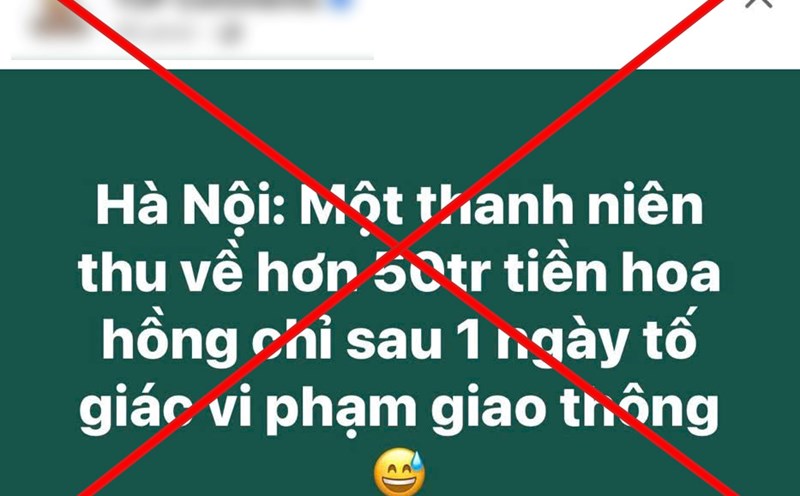 However, the Traffic Police Department (Hanoi City Police) affirmed that this is fabricated information, causing public confusion and negatively affecting the spirit of the movement "All people participate in detecting and providing information reflecting violations of traffic safety and order" which has been effectively implemented by Hanoi City Police in recent times.