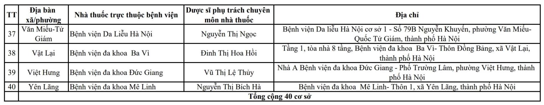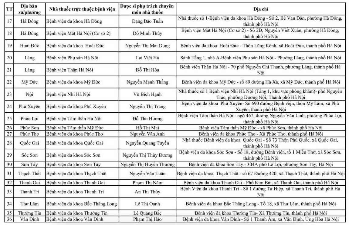The list is published in detail according to each commune and ward, with full information about the name of the pharmacy, pharmacist in charge of expertise, address, contact phone number and specific operating hours during Tet. The public disclosure of the list aims to help people easily look up and access medicine sources in a timely manner, especially in urgent situations.
