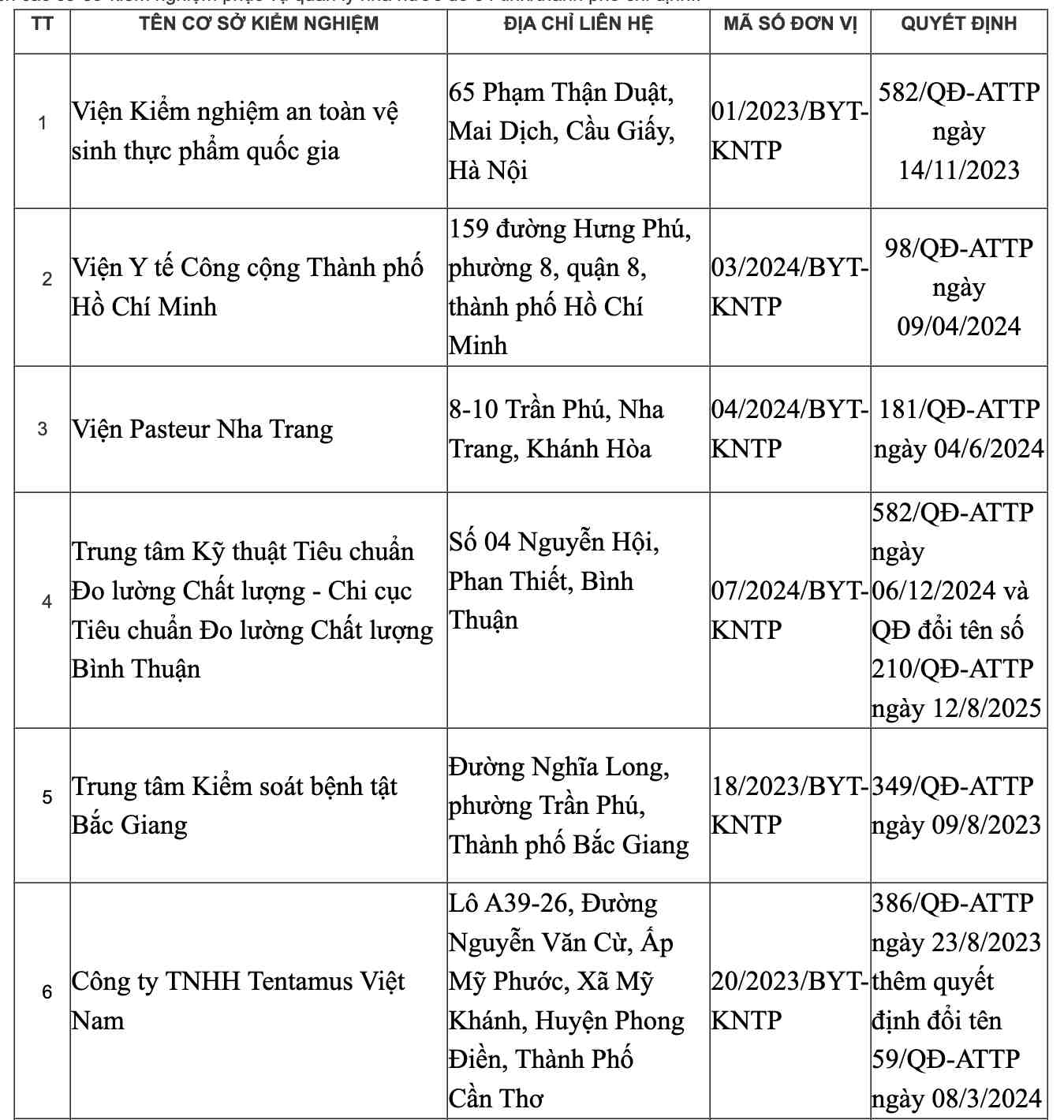 The list of testing facilities designated by the Ministry of Health to serve state management of food safety is updated to February 6, 2026, which is an important basis for management agencies, organizations, and related individuals to look up, coordinate, and carry out inspection and supervision activities in accordance with legal regulations.