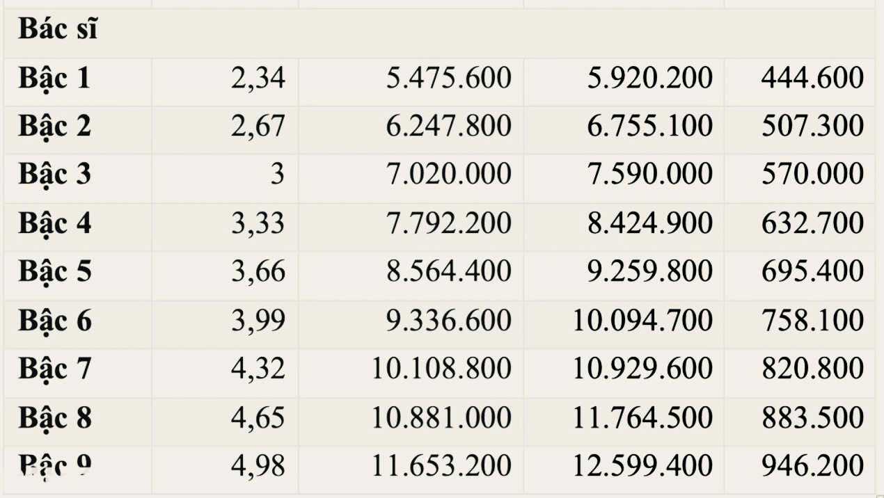 Thus, the basic salary of newly graduated doctors from 2026 is about 6.25 million VND/month, excluding allowances.