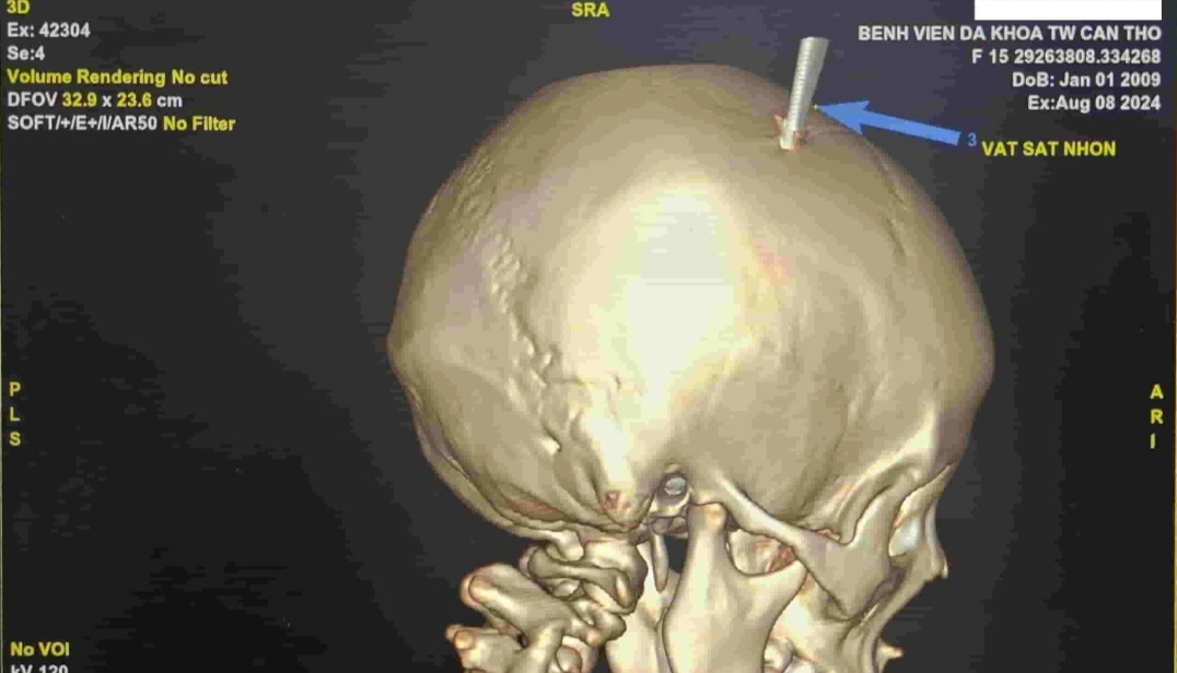 Immediately upon receiving the patient, the doctors quickly conducted an examination, CT scan and performed the necessary tests to assess the damage. After consultation, the patient was indicated for emergency surgery to remove the foreign object from the head area.