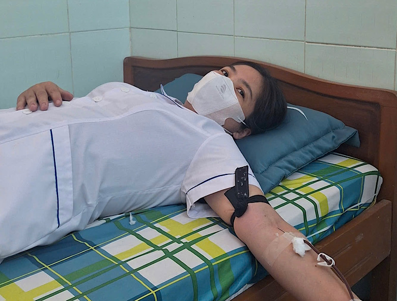 Two nurses Mai Thi Tuoi and Mai Thi Hong (Department of Pediatrics) quickly participated in blood donation, contributing to ensuring sufficient blood transfusion during the surgery.