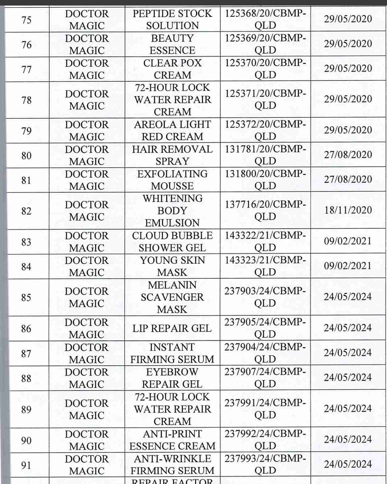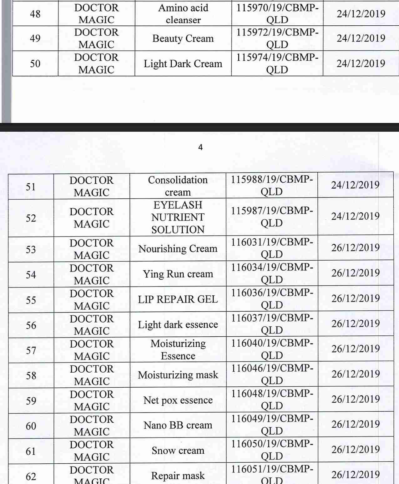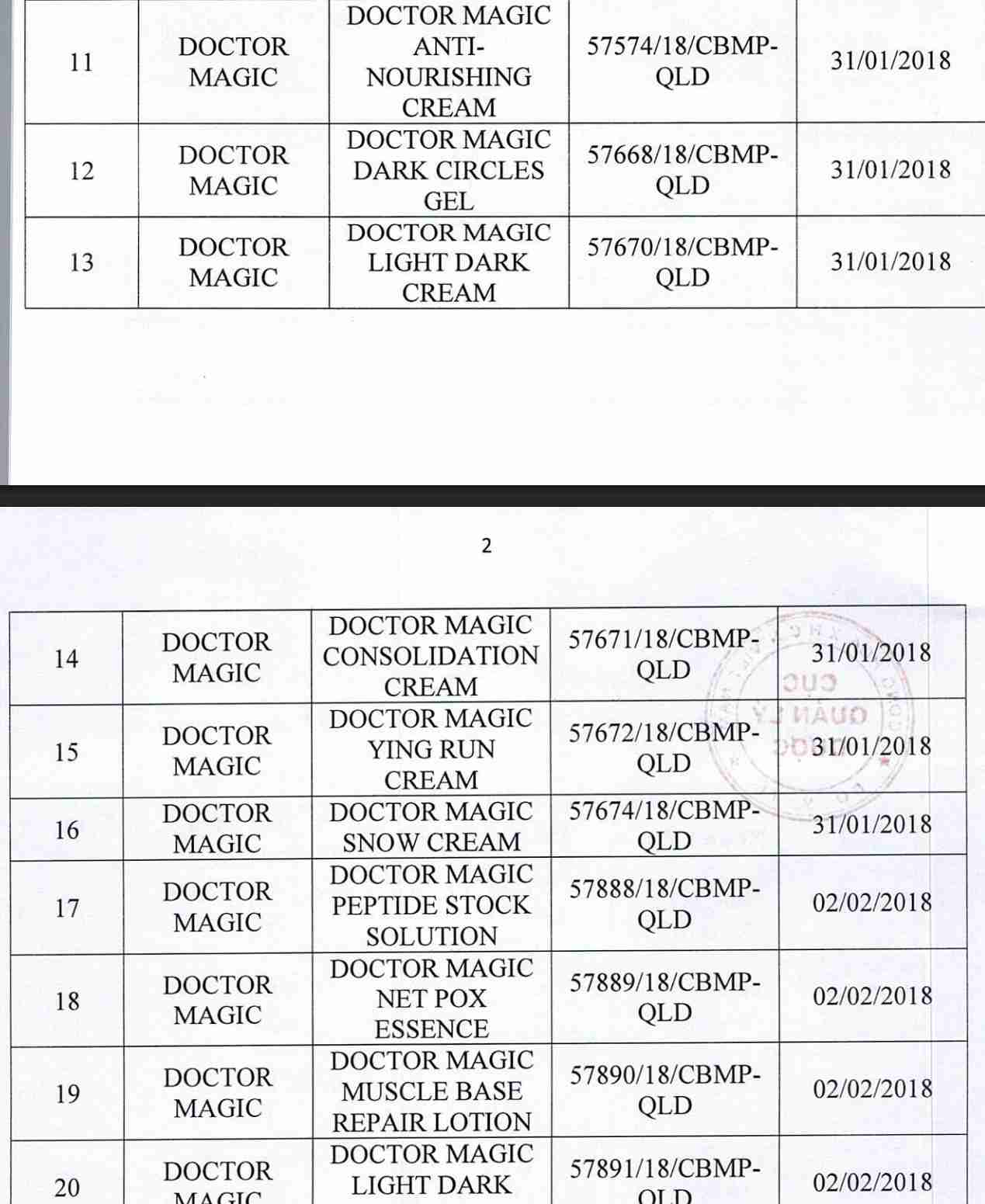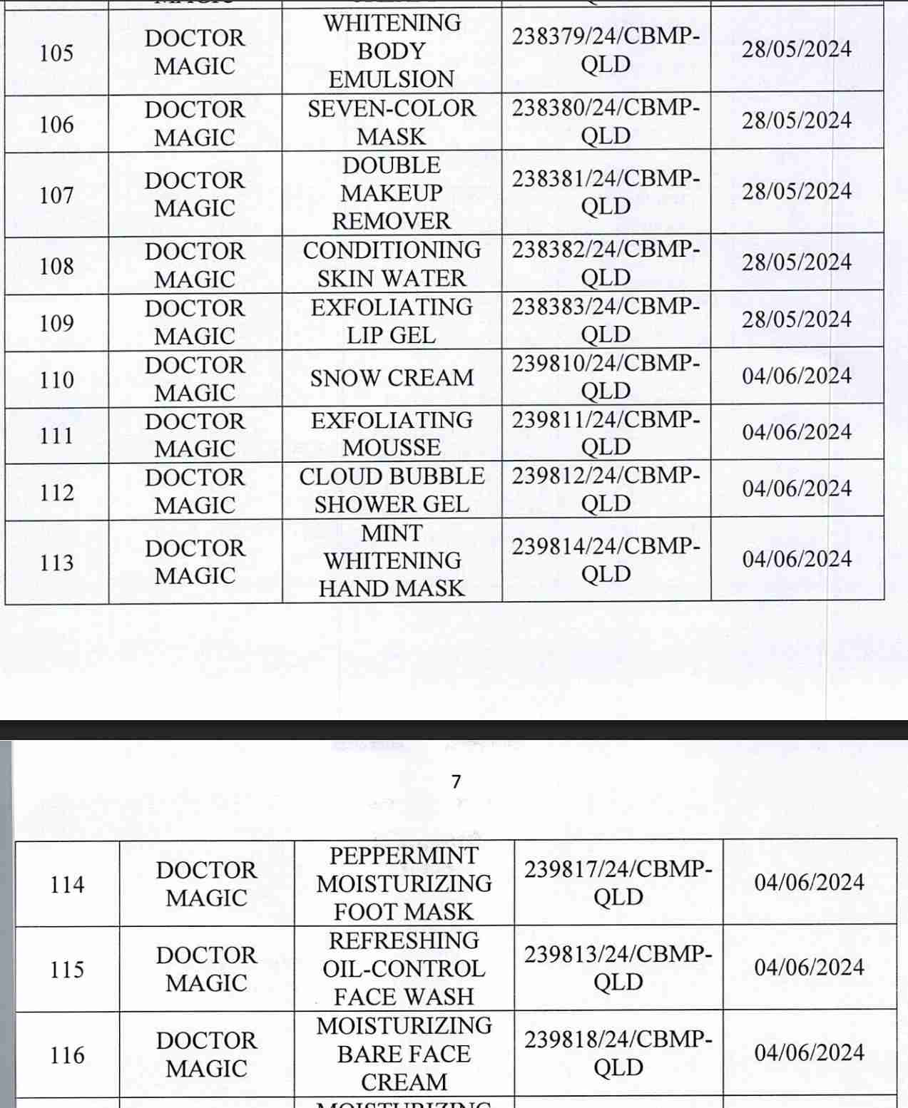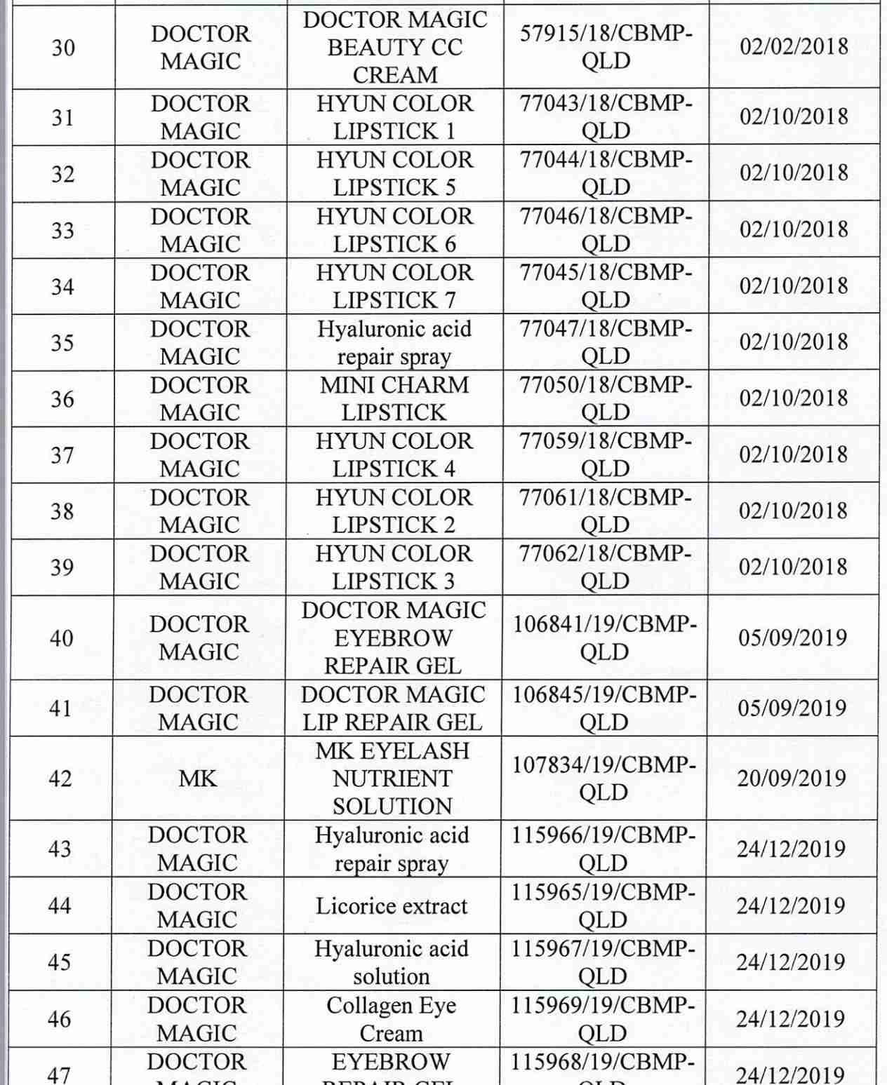 To serve the work of the competent authority for cosmetic products organized by MK Skincare Import-Export Production and Trading Service Company Limited and responsible for bringing them to the market under the brands "DOCTOR MAGIC", "MAIKA BEAUTY", "MK", the Drug Administration requested the Company to provide a report on the testing; stating that the agencies/units have tested the related products; sending the test results of the products; report on the product information file (PIF).