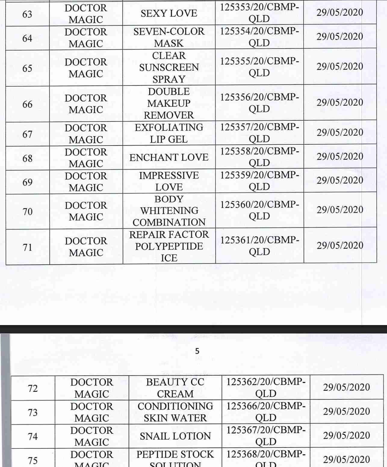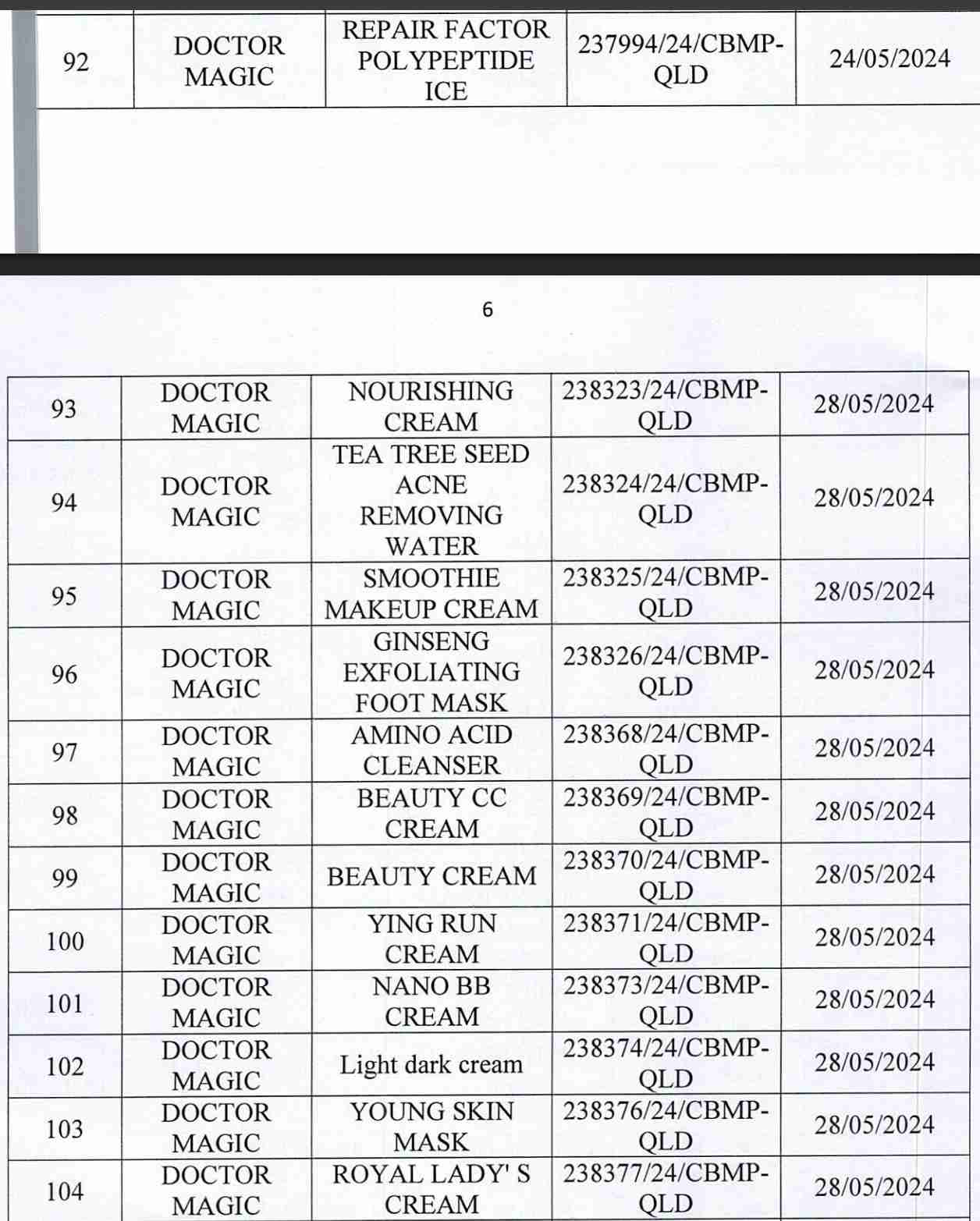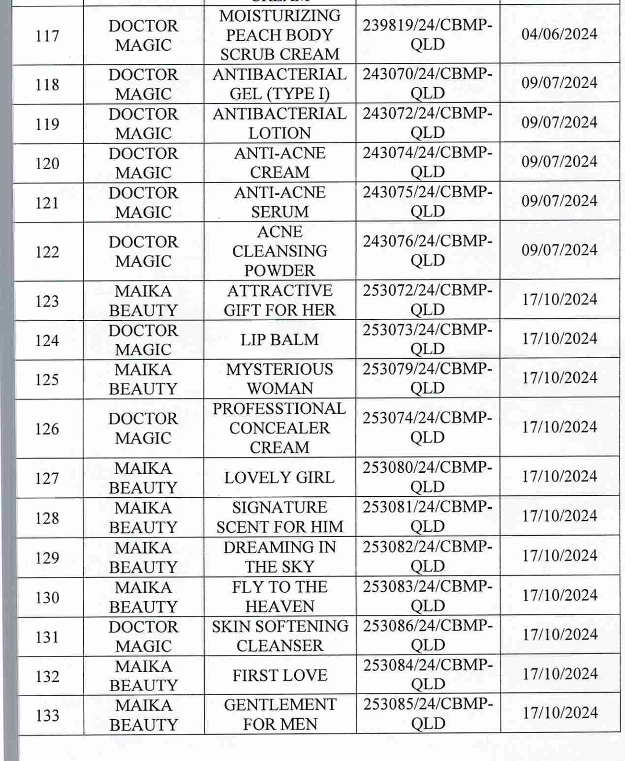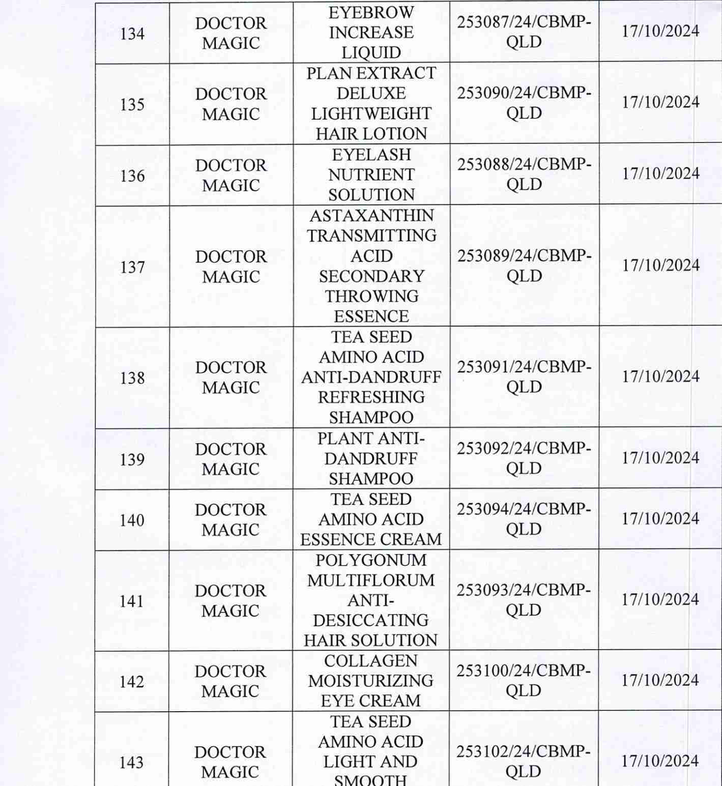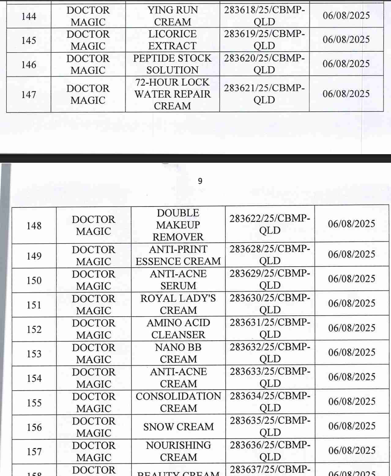 To serve the work of the competent authority for cosmetic products organized by MK Skincare Import-Export Production and Trading Service Company Limited and responsible for bringing them to the market under the brands "DOCTOR MAGIC", "MAIKA BEAUTY", "MK", the Drug Administration requested the Company to provide a report on the testing; stating that the agencies/units have tested the related products; sending the test results of the products; report on the product information file (PIF).