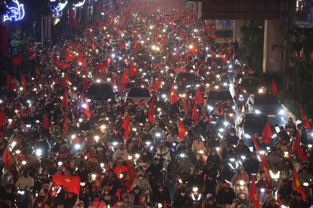 The Vietnamese team won 2-1 against Thailand in the first leg of the AFF Cup 2024 final. People in the capital immediately poured into the streets to celebrate the victory.