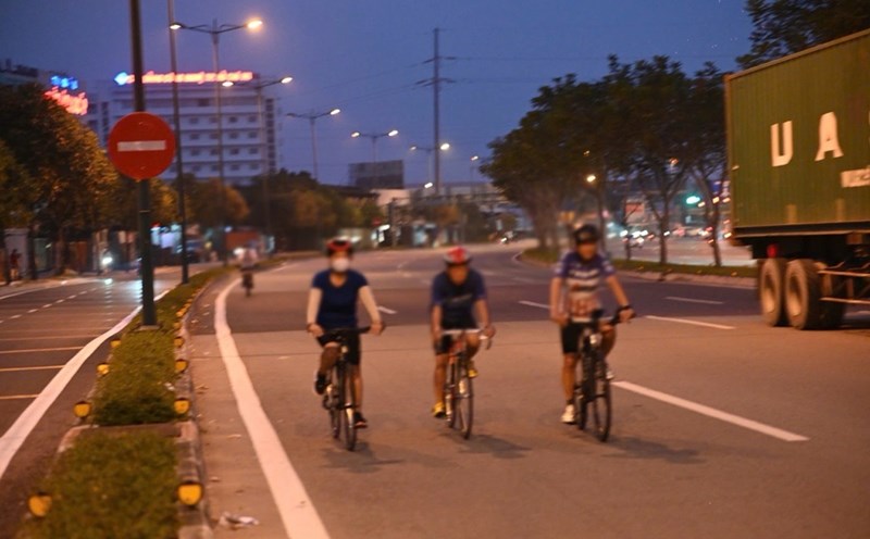 HCMC - When seeing a traffic police checkpoint, many people exercising on bicycles in the car lane immediately carry their bikes across the median strip to get back to the correct lane.