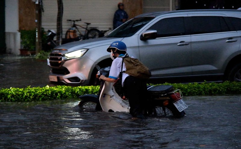 Can Tho - Heavy rain lasting nearly 2 hours caused some roads in the inner city of Can Tho to be heavily flooded.