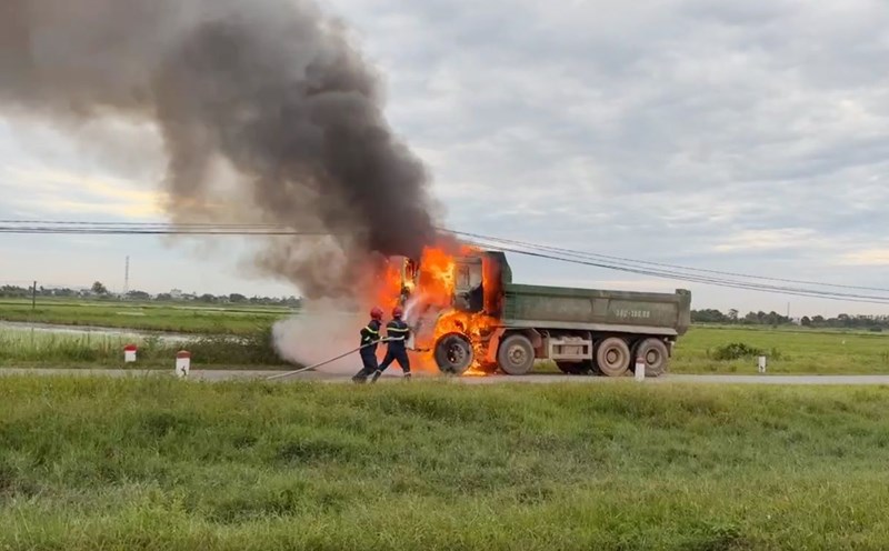 Thanh Hoa - A truck was traveling on the road when it suddenly caught fire fiercely. Fortunately, the driver escaped in time and was safe.