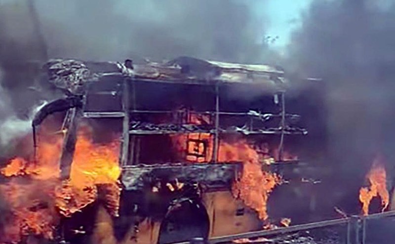 Sleeper bus caught fire fiercely on Mai Son - National Highway 45