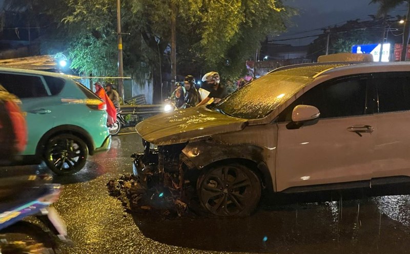 HCMC - On the evening of August 10, a 7-seat car caught fire near the Go Dua overpass amid heavy rain, fortunately there were no casualties. The cause and damage of the fire are being investigated.
