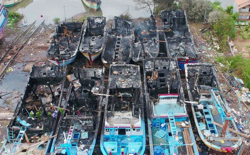 Binh Thuan - Regarding the fire that destroyed 11 fishing boats at a ship repair workshop in Phan Thiet, insurance agencies have now completed compensation for the boat owners.