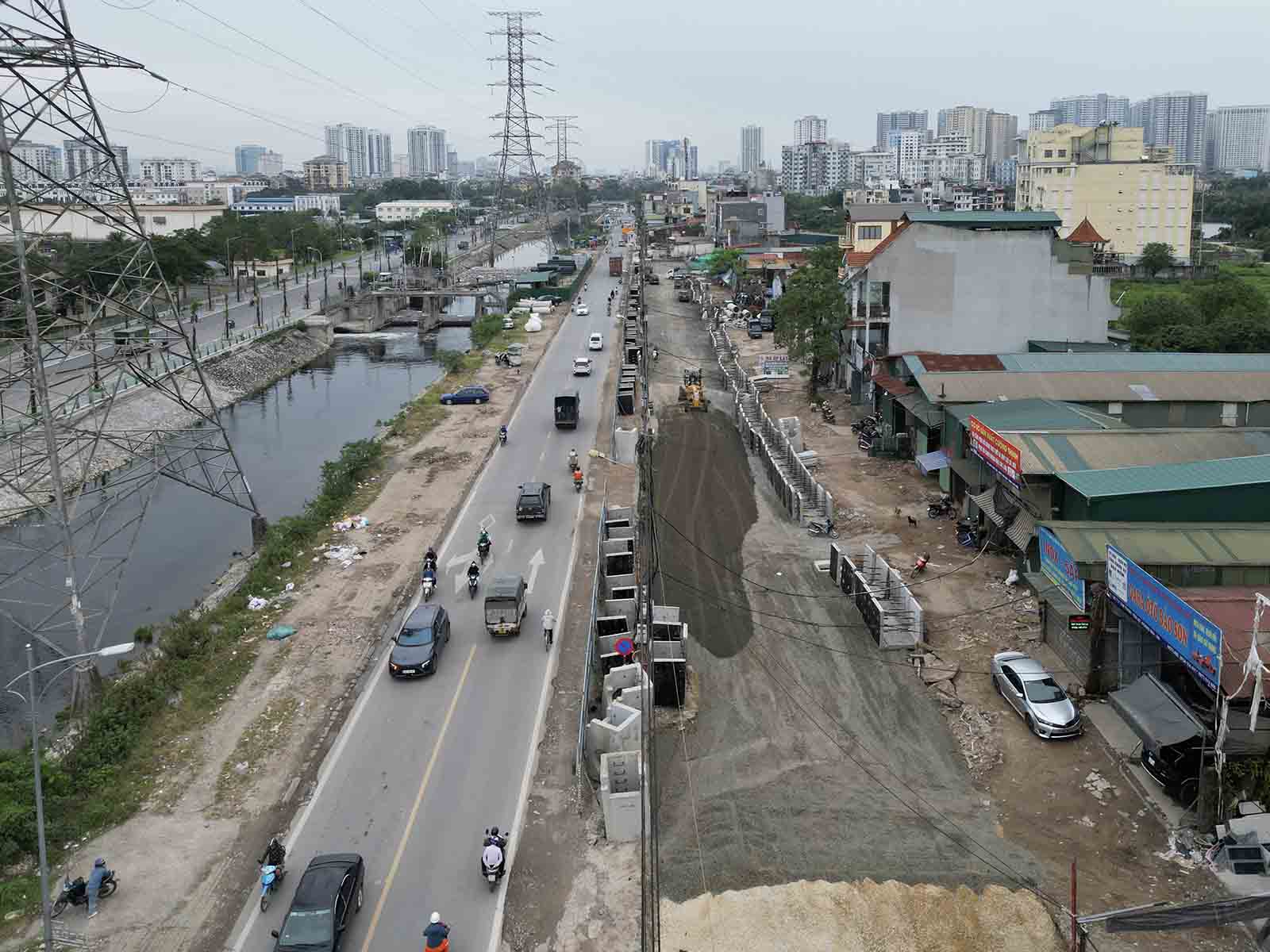 Hanoi - The contractor is expanding Tam Trinh Street from 17m to 40m in some sections with cleared land, with a length of about 800m.