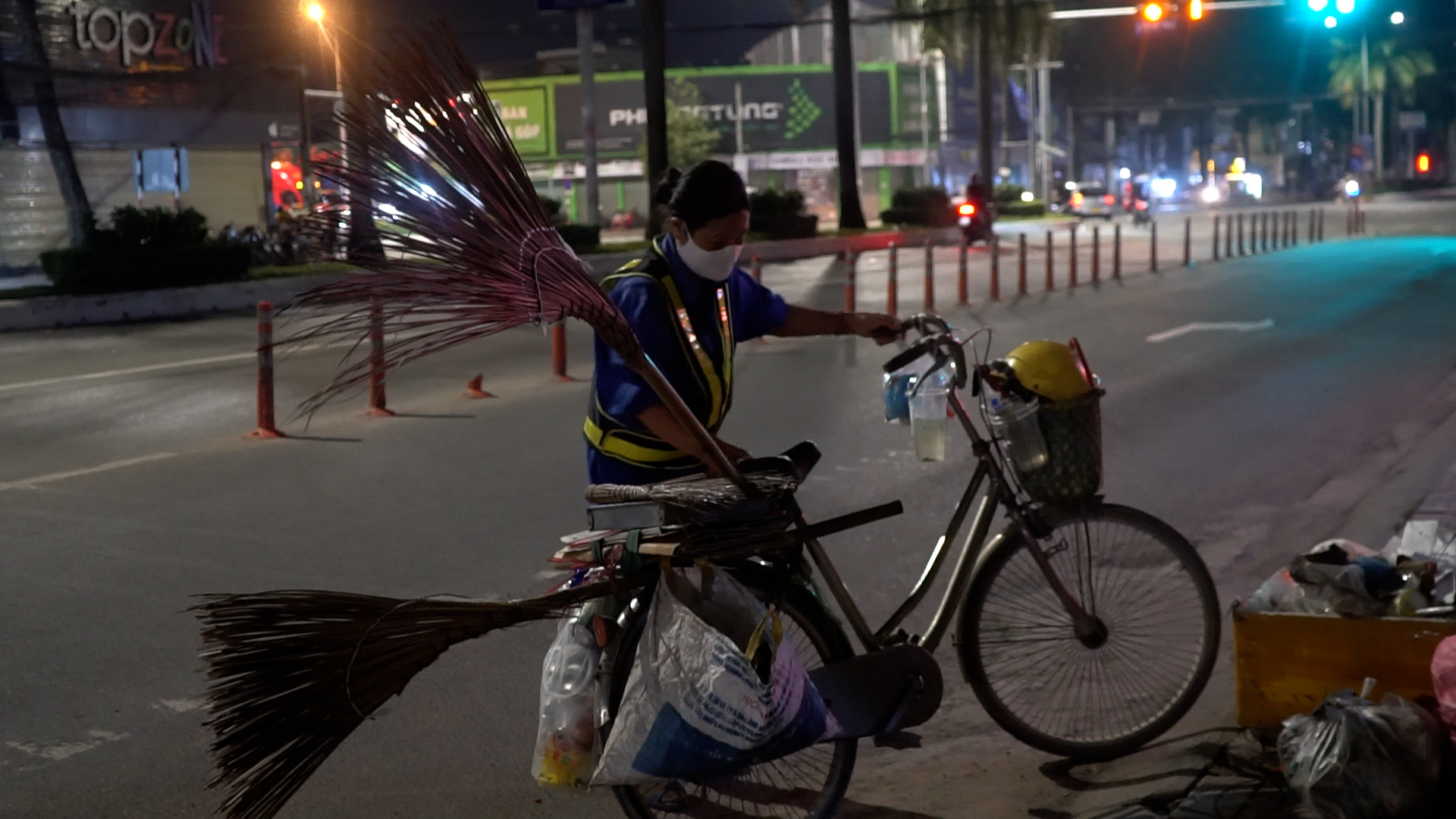 Công nhân môi trường tại Hội An 13 năm đón giao thừa ngoài đường