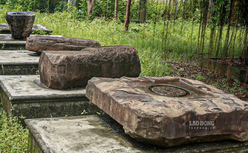 Close-up of forgotten artifacts at Hoa Chau ancient citadel