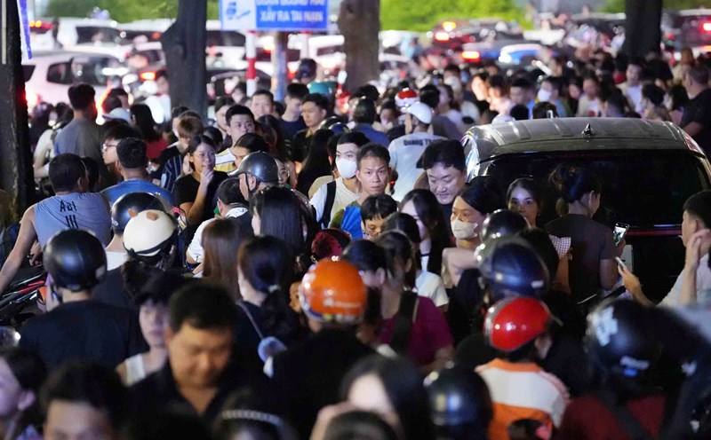 Hanoi - The traffic jam has caused many people to not find a convenient location to watch fireworks at My Dinh, they only heard the loud explosions of fireworks in regret.