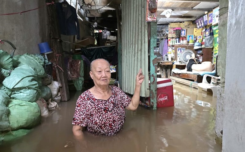 Hanoi - Many villas and townhouses on both sides of Hoang Tung Street (An Khanh Commune) were still deeply submerged in water even though it had stopped raining on October 8.