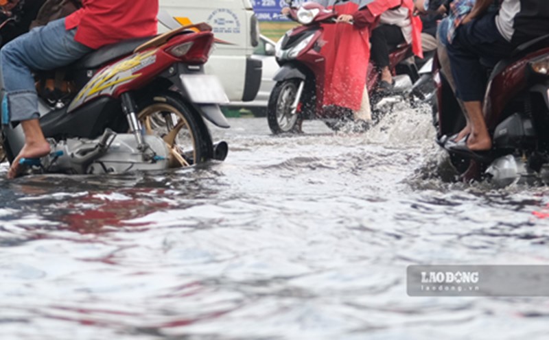 Binh Duong - The heavy rain lasted for more than 3 hours, causing many places in Binh Duong to be flooded, causing motorbikes to be swept away.