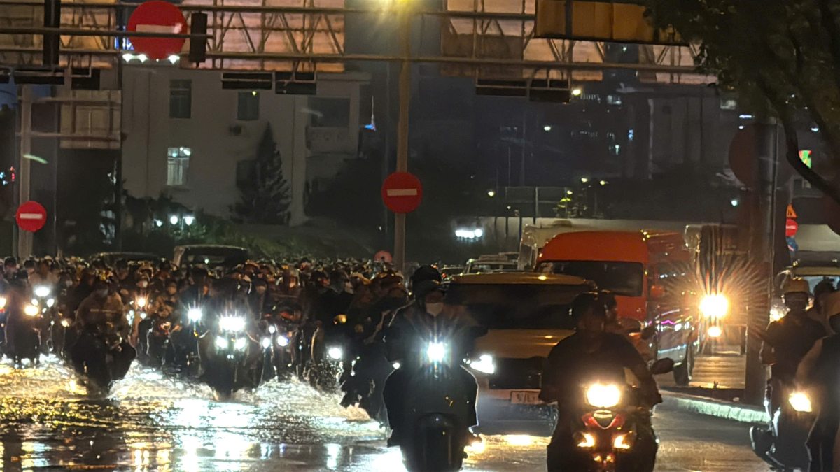 Ho Chi Minh City residents struggle to go to work on the first morning of the week due to high tides causing flooding
