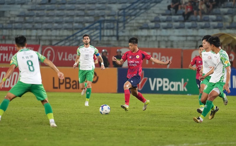 Live football match between Hanoi Police and Ho Chi Minh City in round 19 of V.League 2024-2025, taking place at 7:15 p.m. on April 18.