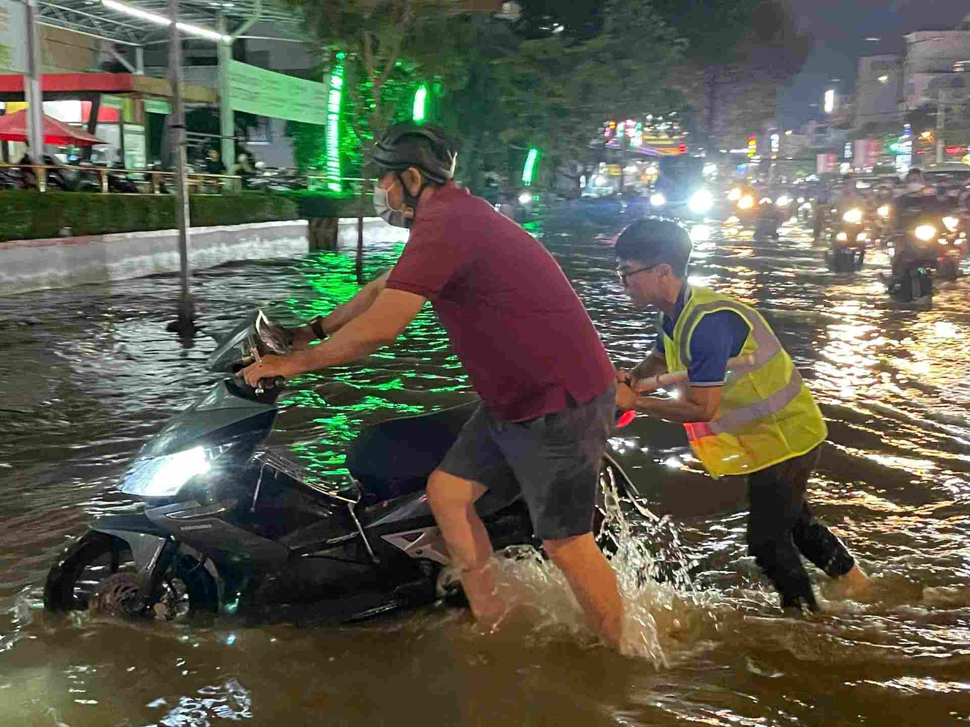High tide reaches peak, roads in Ho Chi Minh City are deeply flooded, people struggle to return home