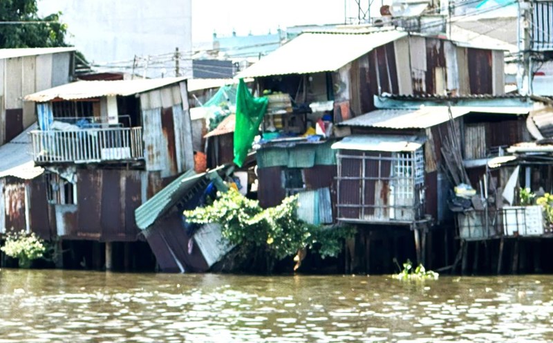 HCMC - A house collapse along the canal suddenly occurred on Hoai Thanh Street, Ward 14, District 8. The woman who was lying in a hammock in the house escaped in time.