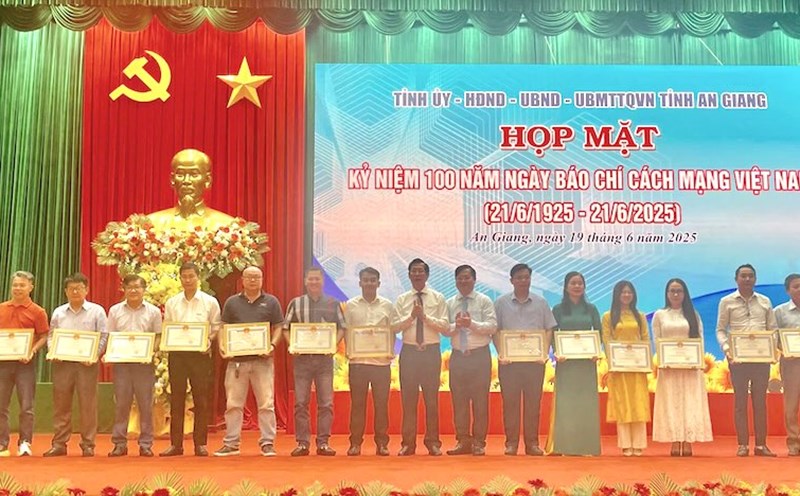 An Giang - Chairman of the Provincial People's Committee awarded certificates of merit to the collective and reporters of the Lao Dong Newspaper Representative Office in the Mekong Delta.