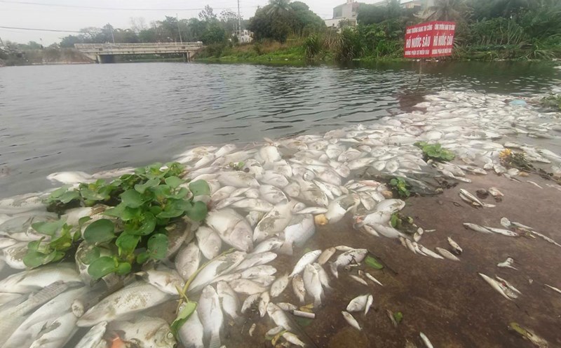 Ha Tinh - A fish pond in Thach Ha commune, Ha Tinh city and Ho Do commune (Loc Ha district) has an area of 36 hectares with dead fish floating on the lake, giving off a foul smell.