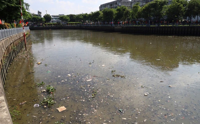 HCMC - Nhieu Loc - Thi Nghe Canal has a series of dead fish floating on the water surface, giving off a foul smell, suspected of causing pollution due to the first rains of the season.