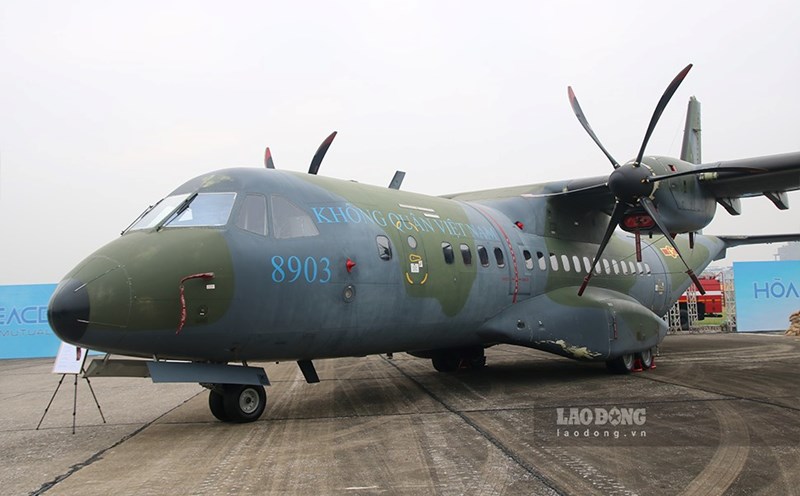 EADS CASA C-295 aircraft - the most modern transport aircraft of the Vietnam Air Force - on display at the Vietnam International Defence Expo 2024.