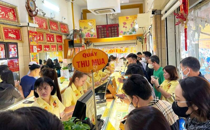 Gold prices are at a high level, many people take advantage of taking profits. Many gold shops in Ho Chi Minh City recorded a bustling number of customers.