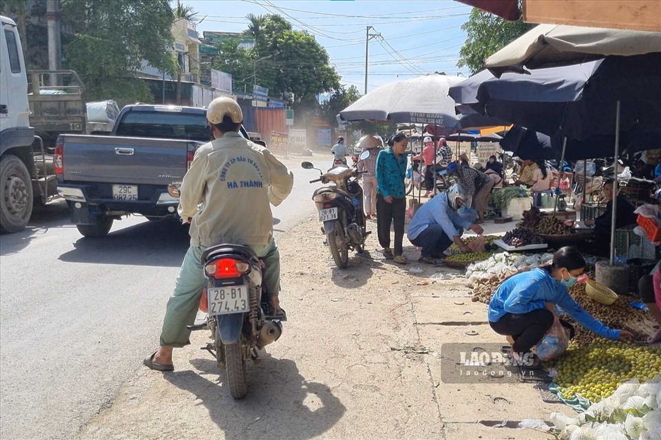 Hòa Bình – Vào giờ cao điểm, tại các khu chợ nằm ven đường, lòng lề đường bị lấn chiếm để phục vụ việc mua bán hàng của người dân. Hoạt động này tiềm ẩn nguy cơ cao mất an toàn giao thông.