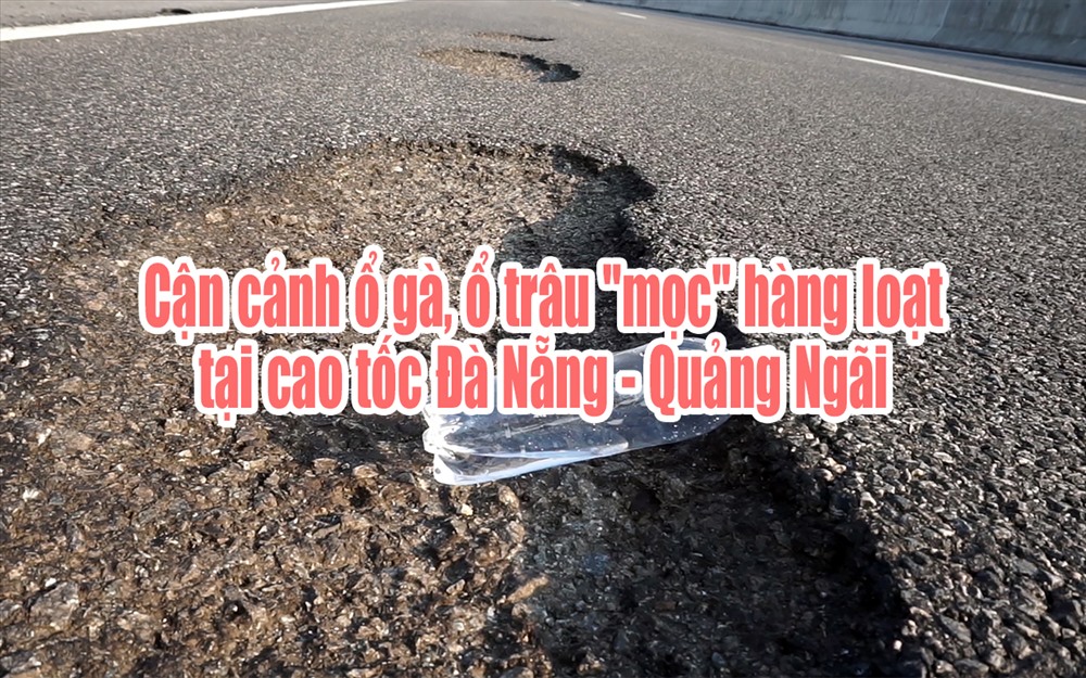 Chỉ sau 1 tháng, công trình đường cao tốc Đà Nẵng - Quảng Ngãi có tổng mức đầu tư lên đến 34.500 tỉ đồng đã xuất hiện chi chít ổ gà. Nhiều đoạn mặt đường nham nhở đe dọa an toàn tính mạng của lái xe.
