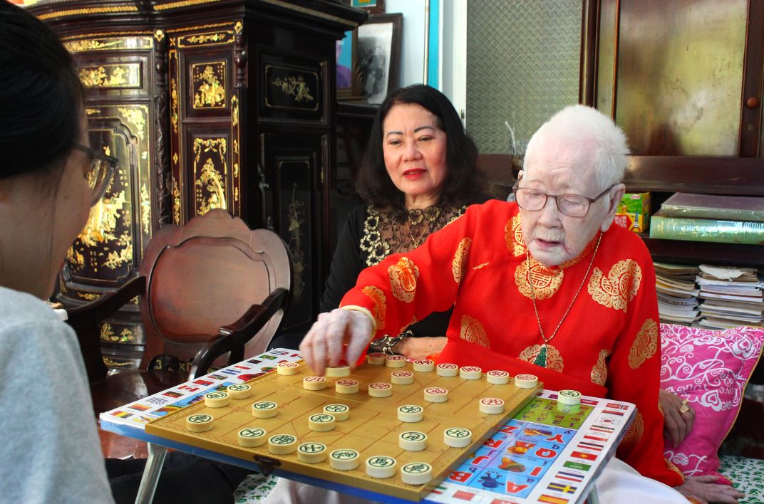 106-year-old woman in Dong Thap is still lucid, playing chess and reading books